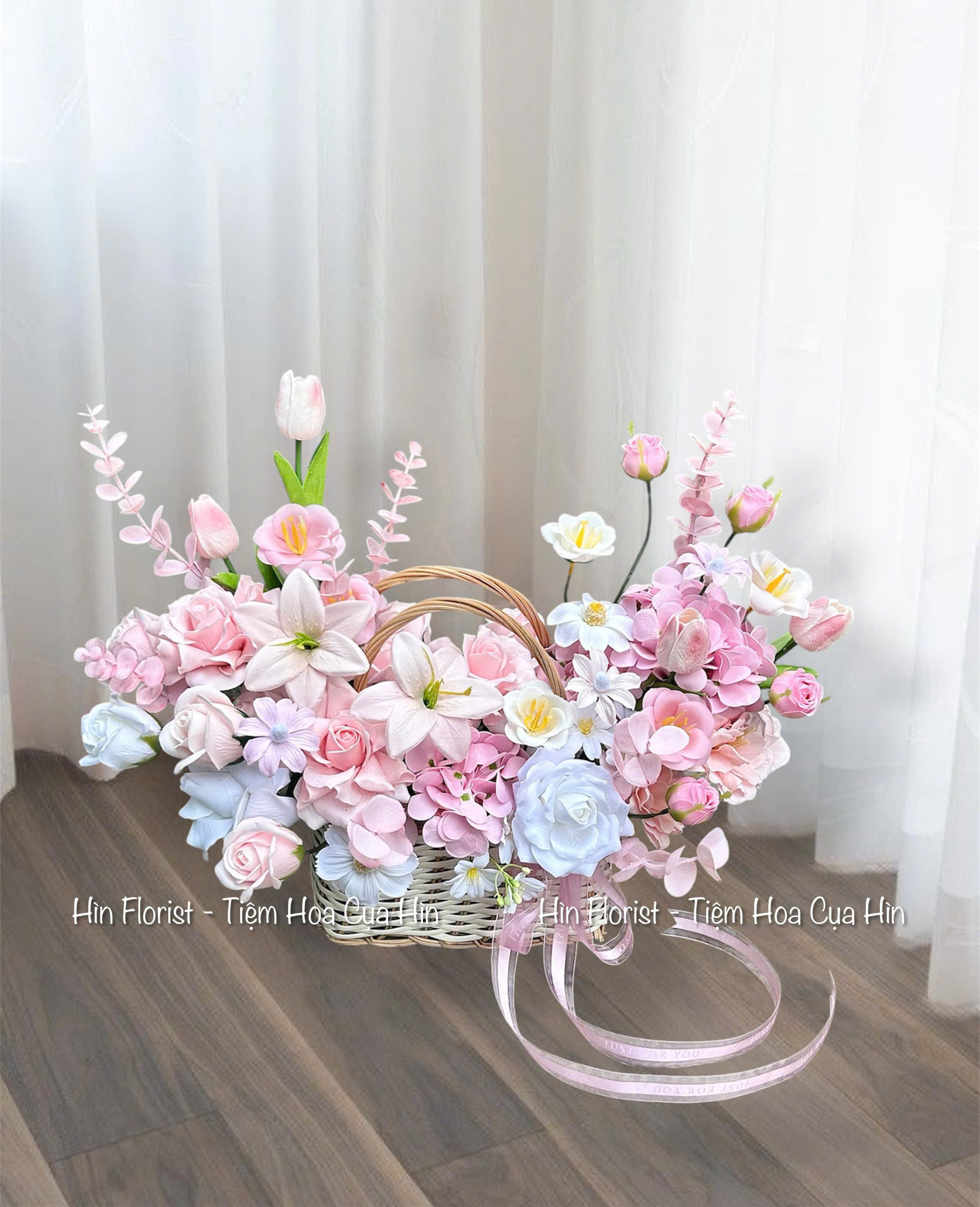 GIỎ HOA SÁP MIX HỒNG TRẮNG 48B