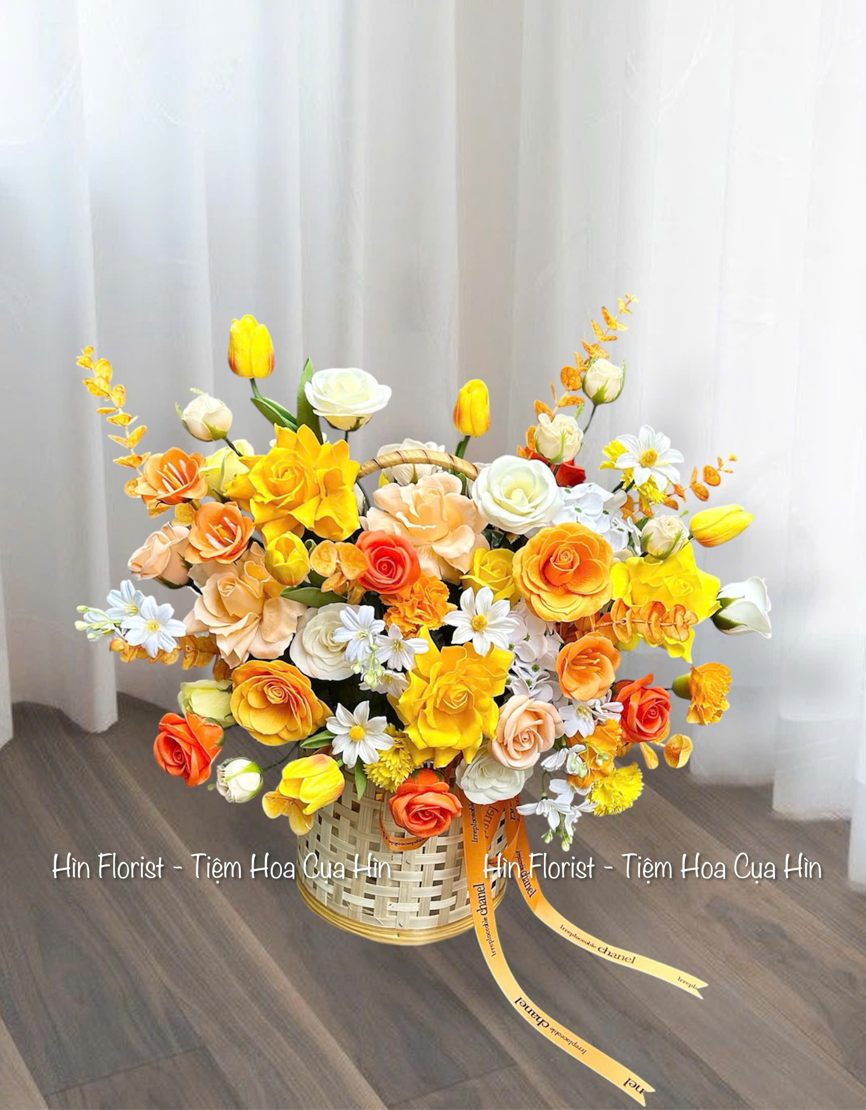 Giỏ hoa sáp vàng cam 62B